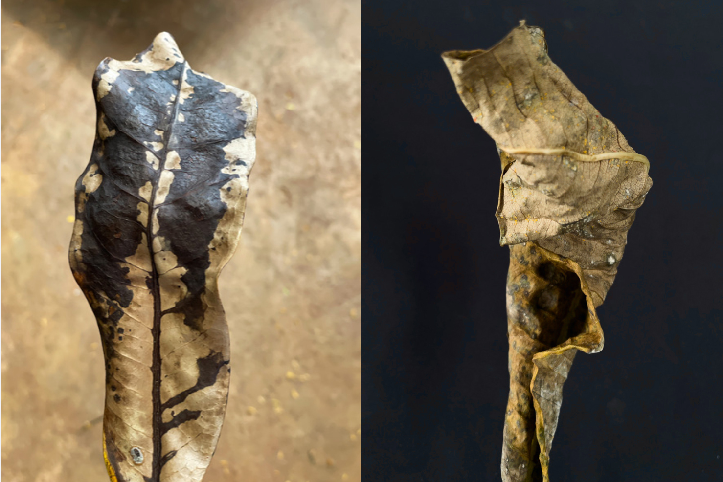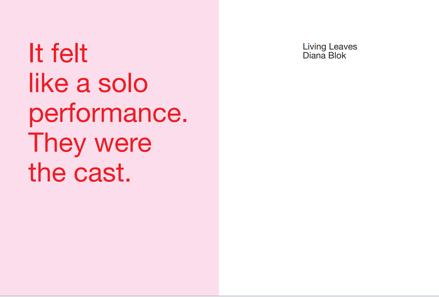Bij het woord herfstdag denken we aan Rainer Maria Rilke (1875-1926) die in zijn beroemde gedicht ‘Herbsttag’ het seizoen presenteert als een wind die de zomer en alle daarbij behorende huiselijkheid weg bezemt. Rusteloos dwalen zal ons deel zijn, ‘wenn die Blätter treiben’. Ofwel, in de vertaling van Menno Wigman: ‘als de bladeren op de herfstwind drijven.’ In dorre blaren ruischt de wind, zou Jean Pierre Rawie zeggen. De zwaarmoedigheid van vóór het sterven klinkt ook door in een sonnet van C.O. Jellema (1936-2003) dat begint met ‘Van soms een herfstblad in het voorjaar nog,/ gevonden op het gras om te bewaren’, en dat eindigt met de vergelijking van het blad met ‘een brief, bewaard, om reden eens geschreven,/ en ’t is in een verleden dat je leest,/ waarvan het handschrift bleef, broze figuur.’ Allemaal mooi en stemmig, maar ook traditioneel en ouwemannetjesachtig; gedichten die geschikt zijn om te reciteren als je zelf met de handjes op de rug over een bospad kuiert en de vrijetijdsmelancholicus uithangt. Het kan ook anders. Maar soms is er iemand voor nodig om je dat te laten beseffen; dat onze blikrichting reeds bij het woord ‘herfst’, laat staan herfstblad, dat natuurlijk speelbal is van de herfstwind, immer achterwaarts is gericht. Alles gaat voorbij, wordt verjaagd of weggeblazen, en die gedachte is de voorbode van je eigen verdwijning die hopelijk niet het doel, maar wel het gewisse einde van je leven is. Maar, zei ik dus, het kan ook anders. In mijn geval was er een bezoek voor nodig aan het Cobra Museum in Amstelveen, waar ik tijdens de opening van I challenge you to love me, een overzichtstentoonstelling van Diana Blok (Montevideo, 1952) nog eens zag dat ze in een halve eeuw veel personen heeft geportretteerd voor wie ‘seksuele voorkeuren en (culturele) identiteit niet vastomlijnd zijn’, zoals dat heet in de terminologie die het goed doet bij subsidie-aanvragen en modieuze cultuurredacties, maar die tegelijk de kunst van deze fotograaf tekort doet. Want haar foto’s kunnen dan wel ergens over gaan, maar vooral zíjn ze iets: voorstellingen, ensceneringen, de levende bewijzen dat je er met een boodschap of thema alléén nog niet bent. Hetgeen Blok al aantoont door haar expositie te eindigen met een drietal kleurenfoto’s die geheel buiten bovengenoemde definitie vallen: foto’s namelijk van herfstbladeren, sterk uitvergroot, en onderdeel van een project dat ze Living Leaves doopte. Dat is ook de titel van een schitterende publicatie, voorzien van een heuse rode cahiersteek, en in eigen beheer verschenen. Om erachter te komen hoe dit project is ontstaan, heb ik na de opening in Amstelveen de kunstenares onlangs opgezocht in haar atelier in de Amsterdamse Staatsliedenbuurt. Haar retrospectief stond al gepland, vertelt ze, toen het Cobra Museum vorig jaar in zwaar weer kwam te verkeren, en sluiting dreigde. Om die te voorkomen, sprong de gemeente bij met bijna anderhalf miljoen euro. Mede daardoor kon de expositie van Blok (samen met die van de Franse fotograaf Pierre Verger) toch doorgang vinden. Maar geld voor een catalogus was er niet. Om die reden heeft ze haar boek zelf uitgebracht. Twintig jaar geleden was ze voor het eerst in de cerrado, een savanne-achtig gebied van bijna 2 miljoen vierkante kilometer midden in Brazilië. Woestijn en begroeiing. Natuurvuren die spontaan oplaaien en die door de mensen niet worden uitgemaakt. Fascinerend en beangstigend. Naar dat gebied keerde Blok een paar jaar geleden terug, na een bezoek aan Bahia, waar ze als artist in residence verbleef en door een blindedarmontsteking onverwacht aan huis was gekluisterd. Portretten maken was er niet bij. Wat te doen, nu haar actieradius beperkt was? Uit nood begon ze bladeren van de grond te rapen en die op glas te plakken. Dat leverde meteen weer nieuwe beelden op. Ze ging ermee door, toen ze opnieuw bij een vriendin in de savanne was, niet ver van de hoofdstad Brasilia. In de tuin van de vriendin had Diana een eenvoudig werkhokje. Doordat er een nieuwe corona-golf opwelde, mocht reizen weer niet. Toen is ze begonnen met foto’s maken, gewoon met de iPhone, van herfstbladeren die ze op de grond had gevonden, en die ze uitvergrootte tot posterformaat. De achtergrond van de bladeren is simpelweg de vloer van het werkhuisje, of de aarde. Wat Blok vastlegde, waren de bladeren die haar onder het wandelen waren opgevallen. Op A5-formaat bleken het regelrechte wonderen te zijn geworden: kleurrijk, met oogjes, imitaties van dieren of krijgers, een spel van nerven en breuken, in bloedrood, goudgeel, kwijnend groen of wonderlijk wit als een vacht- dat laatste blad heet de Yarumo blanco, weet de fotografe, die dat ook heeft moeten opzoeken. Ze is geen bomen- of bladkenner. Dit weet ze wel: die dode bladeren kregen weer leven, door ze met haar camera te vangen. Ze hadden afgedaan, waren niet meer in leven. Maar door ze vast te leggen, brak er zowaar een nieuwe fase aan in hun bestaan; die van fotomodel. Wat we zien, is geen aanleiding voor een melancholische terugblik. Waar we een blik op mogen werpen, is de verbeelding: doordat Blok er een beeld in zag, en ons dat toont, kunnen wij nu ook eindeloos kijken naar de bladeren die stuk voor stuk bewijzen dat het einde niet het laatste woord heeft. Vastgelegd in liggende toestand, lijkt het of ze zich oprichten voor de foto: op de wederopstanding die de bladeren hier vertonen, borduurt de toeschouwer weer voort. En het is niet in een verleden dat je leest. Deze broze sculpturen doen een beroep op je vermogen tot associëren – mombakkes, wade, kinkhoorn, rots, guirlande? -, en tot regelrecht bewonderen. Living Leaves, het sluitstuk van het retrospectief in Amstelveen, markeert een nieuw begin. Kijk zelf maar eens met de blik van Blok. Wat een leven zit er in de dood.