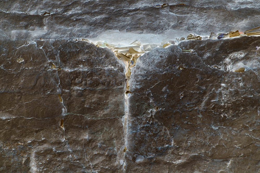 In dealing with this process, she decides to complement the black and white 'still lifes' from her mother with a silent testimonial to her father's life. She takes photographs of the Wailing Wall in Jerusalem. Color photos, zoomed in on details, printed in negative. Just as cryptic and suggestive as the life they will symbolize. She then goes to look in the family archives for additional and explanatory visual material. A conversation on film with the Ambassador's children gives an extra dimension to the incredible, far-reaching and existential story. ‘Time Tells’ has taken shape. The ambiguous title sums the project up perfectly.